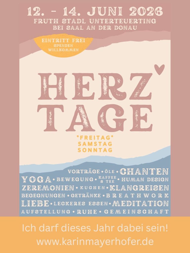 Der Eintritt zu den Herztagen ist frei, Spenden sind willkommen. Ich freue mich auf dich! 🌸